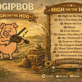 In the end, “High on the Hog” is more than just a collection of songs; it’s a portrait of a songwriter embracing both the past and the future. Mogipbob proves that authentic storytelling doesn’t need to be flashy to be effective. By combining small-town humor, honest reflections, and groovy retro influences with modern AI-assisted production, Jason Graves has crafted an album that feels refreshingly genuine. For listeners who enjoy narrative songwriting, classic melodic sensibilities, and music that doesn’t forget to have fun, this album delivers warmth, personality, and replay value. Shout-out to Mogipbob for creating a project that stays true to its voice while boldly exploring new creative territory, a reminder that great songs always begin with a strong story.